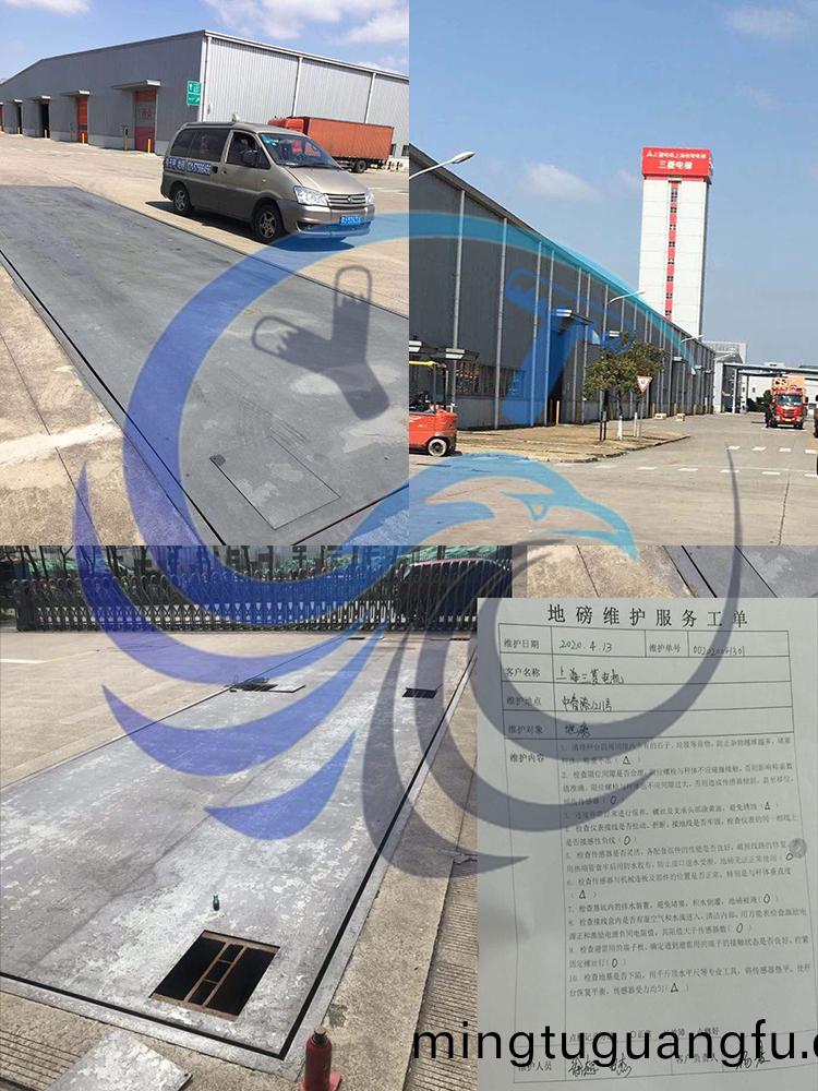 2018年(nian)底我公(gong)司爲(wei)三(san)蔆(ling)電(dian)機(ji)機電(dian)(上(shang)海(hai))有(you)限公司安裝(zhuang)一(yi)檯(tai)3*12米100噸(dun)地磅(bang)竝(bing)維(wei)護(hu)至今,現場(chang)如下(xia)圖: